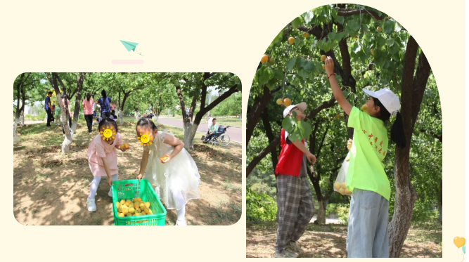 在“福家大院”的杏林,“福娃”与社会儿童共同体验了摘杏的快乐,收获了珍贵友谊。金黄饱满的杏子挂满枝头,孩子们踮起脚尖、伸长手臂,亲手摘下这份夏日的甜蜜。